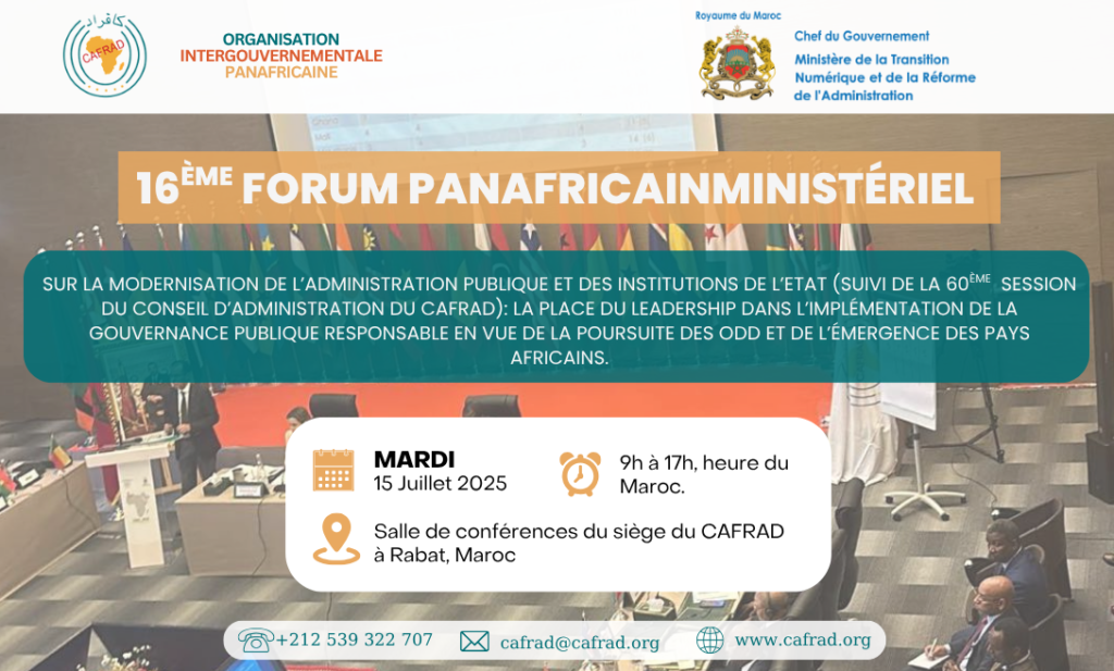 Lieu : salle de conférences du siège du CAFRAD à Rabat, Maroc