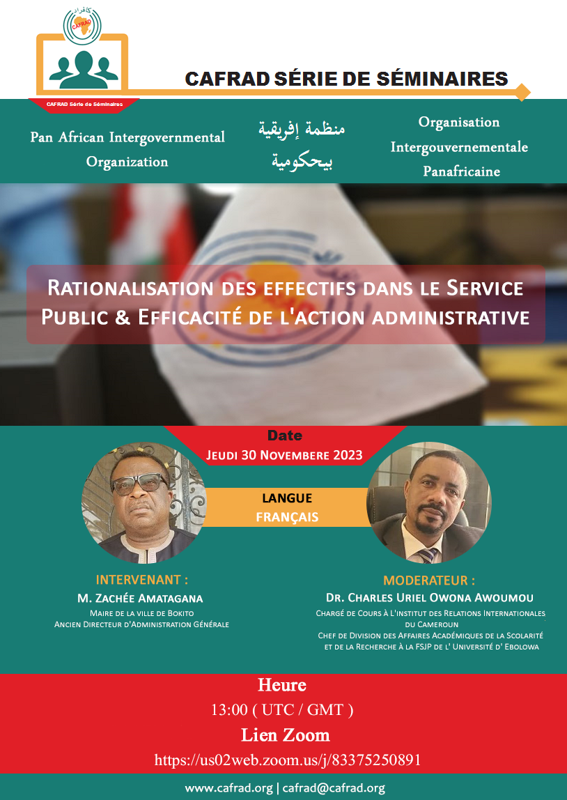 Le CAFRAD est heureux de vous annoncer la reprise de ses webinaires pour une nouvelle série de thèmes variés et une panoplie d’intervenants de renommée internationale.