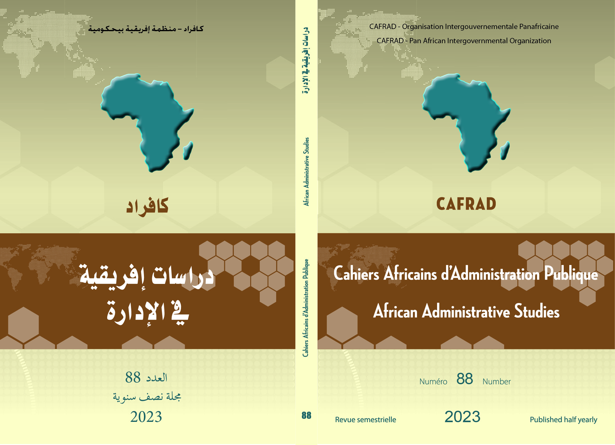 L’Organisation Intergouvernementale Panafricaine CAFRAD a l’honneur d’annoncer la parution de sa dernière publication. Il s’agit du 88ème numéro de « Cahiers Africains d’Administration Publique », une revue bilingue et semestrielle regroupant un ensemble de recherches et d’études sur des questions et problématiques d’actualité relevant du Secteur Public et de la Gouvernance en Afrique, questions centrales autour desquelles portent les activités du CAFRAD.
