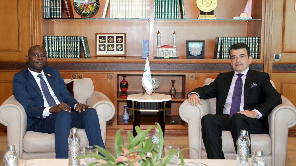 De droite à gauche : Dr Salim M. Al Malik, Directeur général de l’Organisation du Monde Islamique pour l’Éducation, les Sciences et la Culture (ICESCO), et Dr Coffi Dieudonné Assouvi, Directeur général de l’Organisation Intergouvernementale Panafricaine (CAFRAD)