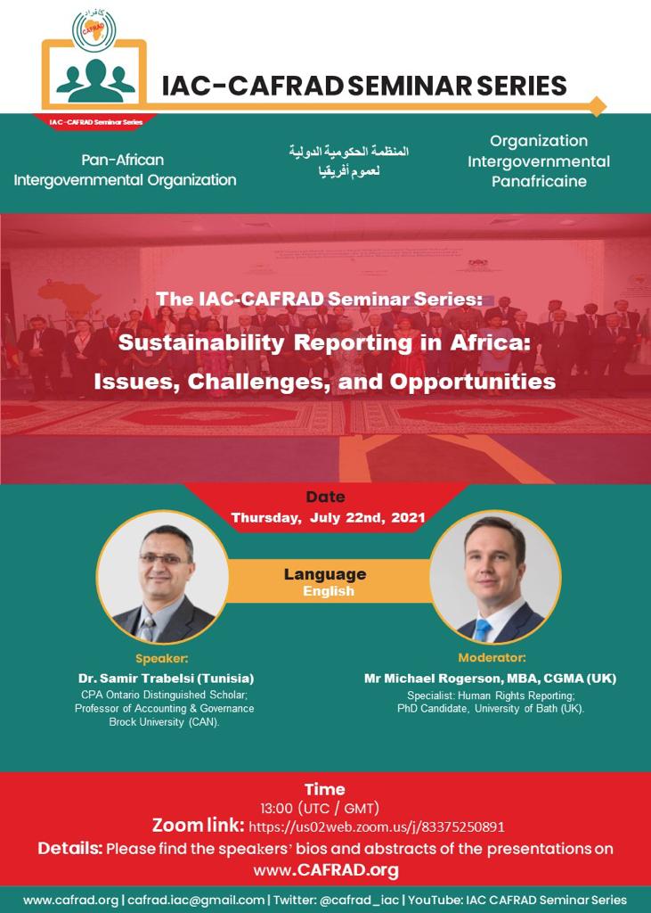 Thème du webinaire pour le 22 juillet – La Série de Séminaires CCI-CAFRAD